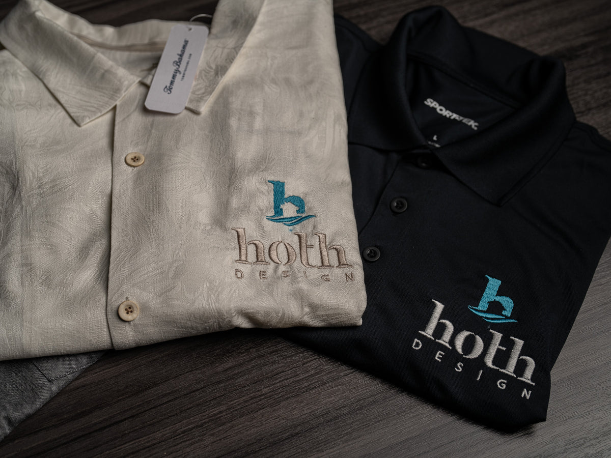 Embroidery has physical limitations that can require adjustments to your design to ensure a clean and professional result. Text must generally be at least 0.25 inches tall to remain legible, and very small lettering may need to be enlarged or simplified. Fine details, thin lines, gradients and intricate patterns do not translate well into thread, so bold well-defined elements and solid high-contrast colors produce the best outcome. Standard left chest logos are typically around 3.5 inches wide, with a maximum width or height of about 4.5 inches depending on the design’s proportions. Every logo must be digitized into a stitch file, and during that process modifications such as adjusting spacing, simplifying shapes or refining details may be necessary to maintain clarity, proper stitch placement and overall quality while preserving your brand’s integrity.